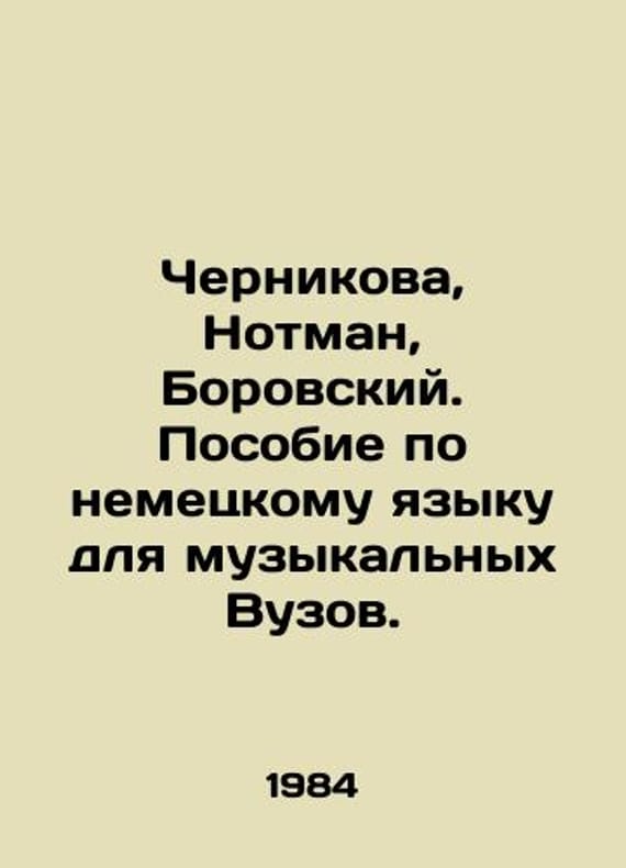 Chernikova, Notman, Borovsky. A German language manual for music schools. In Russian /Chernikova, Notman, Borovskiy. Posobie po nemetskomu yazyku dlya muzykalnykh Vuzov. M. Higher School of 1984. We have thousands of titles and often several copies of each title may be available. Please feel free to contact us for a detailed description of the copies available. SKUalb23e5dc6cd79ac00a.
