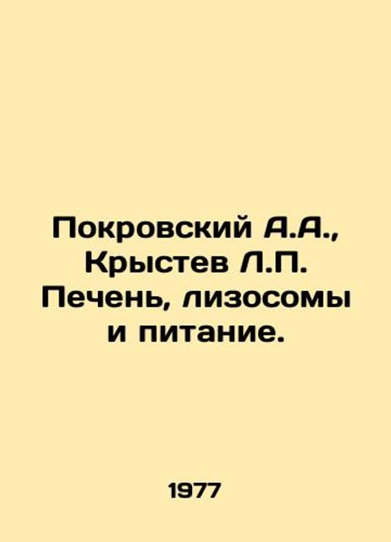 Pokrovsky A.A., Krystev L. Liver, Lysosomes and Nutrition. In Russian /Pokrovskiy A.A., Krystev L. Pechen, lizosomy i pitanie. Edited by T.A. Tashev. Translated from Bulgarian. Sofia. Publishing House of the Bulgarian Academy of Sciences. 1977. We have thousands of titles and often several copies of each title may be available. Please feel free to contact us for a detailed description of the copies available. SKUalb24192afda2cad7e4.