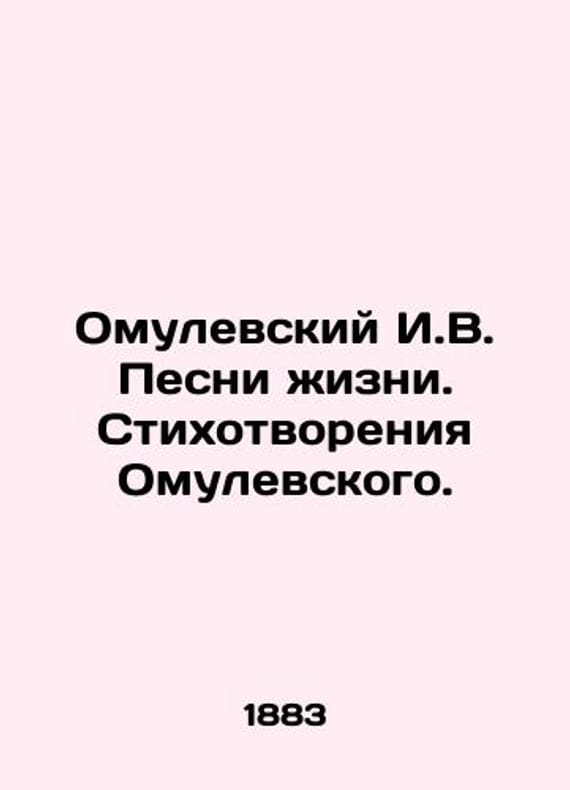 Omulevsky I.V. Songs of Life. Poems by Omulevsky. In Russian /Omulevskiy I.V. Pesni zhizni. Stikhotvoreniya Omulevskogo. St. Petersburg. A.Ivanov Library, 1883. 498, V, 8 n. pages The first and only lifetime collection of the famous poet of the democratic direction. (Before that there was a collection of translations from Mickiewicz and the novel Step by Step).We have thousands of titles and often several copies of each title may be available. Please feel free to contact us for a detailed description of the copies available.SKUalb246f04c7dea17863.