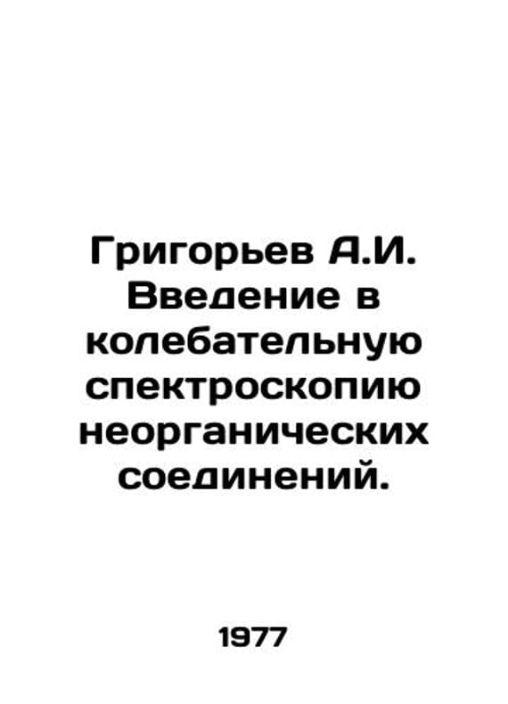 Grigoryev A.I. Introduction to oscillating spectroscopy of inorganic compounds. In Russian /Grigorev A.I. Vvedenie v kolebatelnuyu spektroskopiyu neorganicheskikh soedineniy. Revised by A. A. Maltsev. Reviewers: Yu. Ya. Kharitonov, Doctor of Chemical Sciences, L. A. Kazitsyna. Circulation 5000 copies. Moscow University Publishing House 1977. 88 p. We have thousands of titles and often several copies of each title may be available. Please feel free to contact us for a detailed description of the copies available. SKUalb24c2ba614d3217bd.