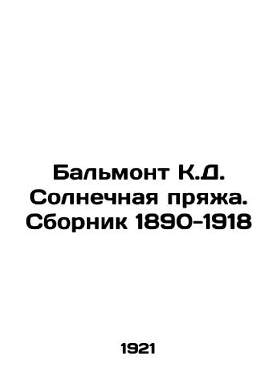 Balmont C.D. Sunshine Yarn. Compilation 1890-1918 In Russian /Balmont K.D. Solnechnaya pryazha. Sbornik 1890-1918 M. Izd.M. and S. Sabashnikov 1921. 258s.We have thousands of titles and often several copies of each title may be available. Please feel free to contact us for a detailed description of the copies available.SKUalb2539e3a50e6231e6.