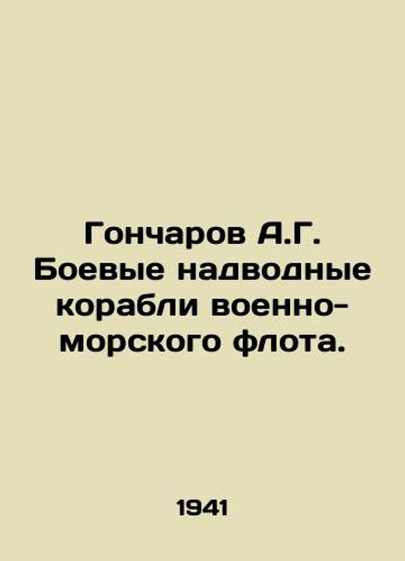A.G. Goncharov Naval Surface Warships. In Russian /Goncharov A.G. Boevye nadvodnye korabli voenno-morskogo flota. M.: Voenmorizdat. 1941. We have thousands of titles and often several copies of each title may be available. Please feel free to contact us for a detailed description of the copies available. SKUalb2544aacd46c37988.