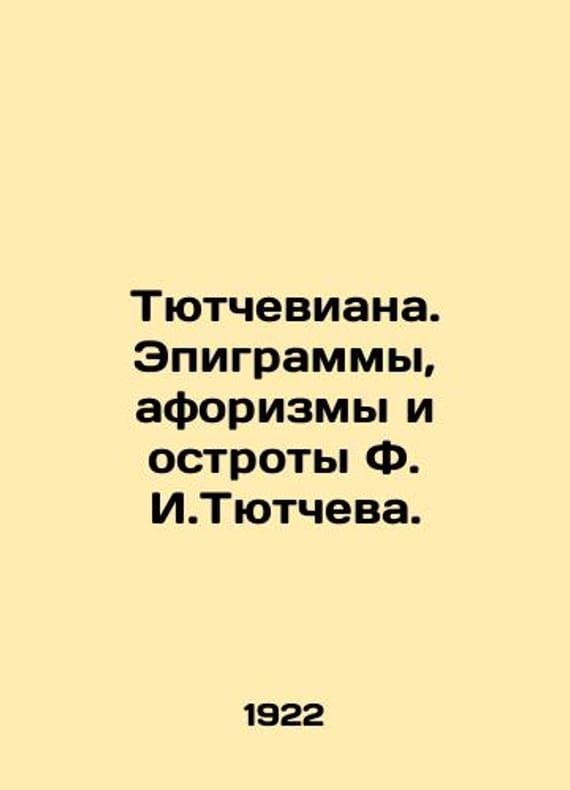 Tyutcheviana. Epigrams aphorisms and acuity of F. I. Tyutcheviana. In Russian (ask us if in doubt)/Tyutcheviana. Epigrammy aforizmy i ostroty F. I.Tyutcheva.. Foreword by Georgy Chulkov. Moscow Kostra Publishing House. 1922. 56s. SKUalb254be3790d6e8b41.
