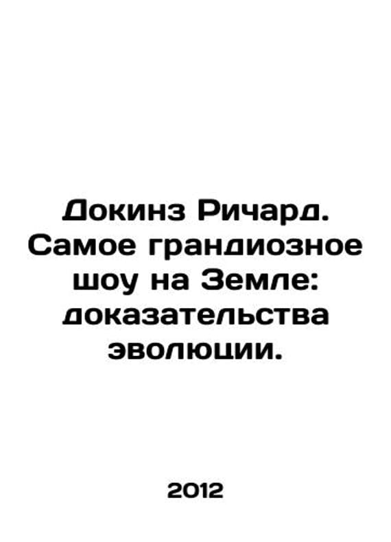 Richard Dawkins: The Greatest Show on Earth: Evidence of Evolution. In Russian /Dokinz Richard. Samoe grandioznoe shou na Zemle: dokazatelstva evolyutsii.M Corpus 2012.We have thousands of titles and often several copies of each title may be available. Please feel free to contact us for a detailed description of the copies available. SKUalb25647fca7c855198.