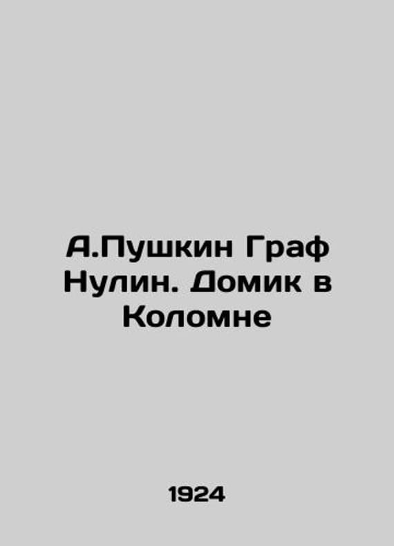 A.Pushkin Count Nulin. House in Kolomna In Russian /A.Pushkin Graf Nulin. Domik v Kolomne Moscow-Petrograd Gosizdat 1924, 46 p.We have thousands of titles and often several copies of each title may be available. Please feel free to contact us for a detailed description of the copies available.SKUalb256ad9e1a551e6a0.