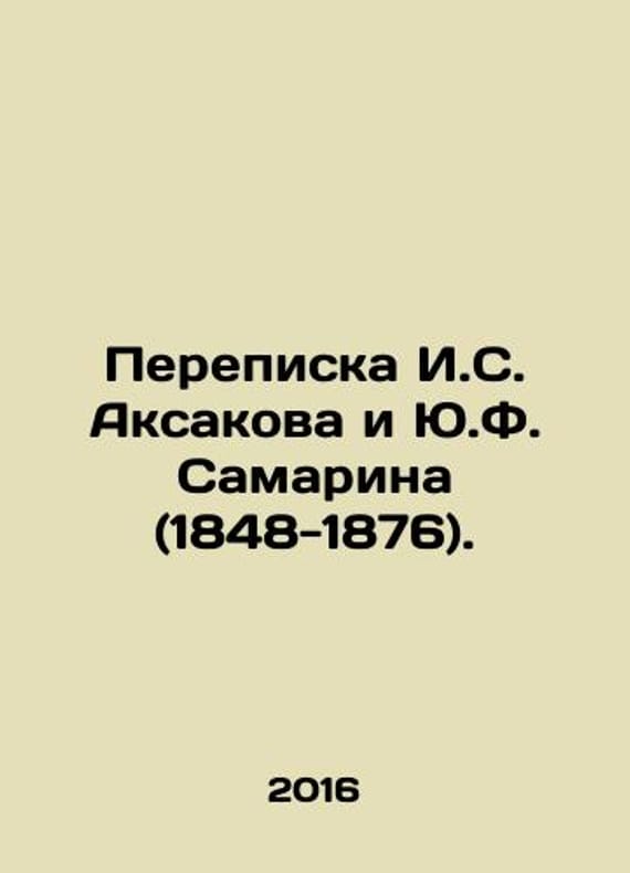 Correspondence between I. S. Aksakov and Y.F. Samarin (1848-1876). In Russian /Perepiska I.S. Aksakova i Yu.F. Samarina (1848-1876). Podgot. edit. T. F. Pirozhkova, O. L. Fetisenko and V. Yu. Shvedova: introduction by T. F. Pirozhkova: preparation of texts by T. F. Pirozhkova and O. L. Fetisenko: note by T. F. Pirozhkova and V. Yu. Shvedova S.Pb.Pushkinsky House 2016. 712s.We have thousands of titles and often several copies of each title may be available. Please feel free to contact us for a detailed description of the copies available.SKUalb25d2246f0bf324af.