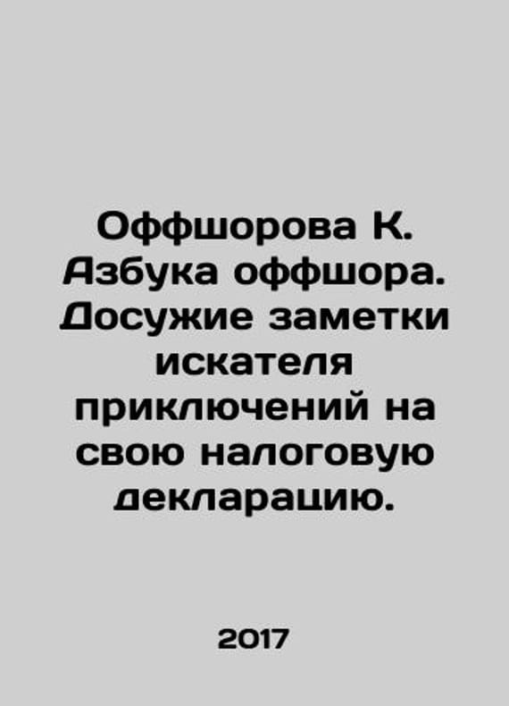 Offshore K. ABC Offshore. Leisure notes of the adventurer on his tax return. In Russian /Offshorova K. Azbuka offshora. Dosuzhie zametki iskatelya priklyucheniy na svoyu nalogovuyu deklaratsiyu. M. Ripoll Classic 2017 240s.We have thousands of titles and often several copies of each title may be available. Please feel free to contact us for a detailed description of the copies available.SKUalb25f10c26e142456b.
