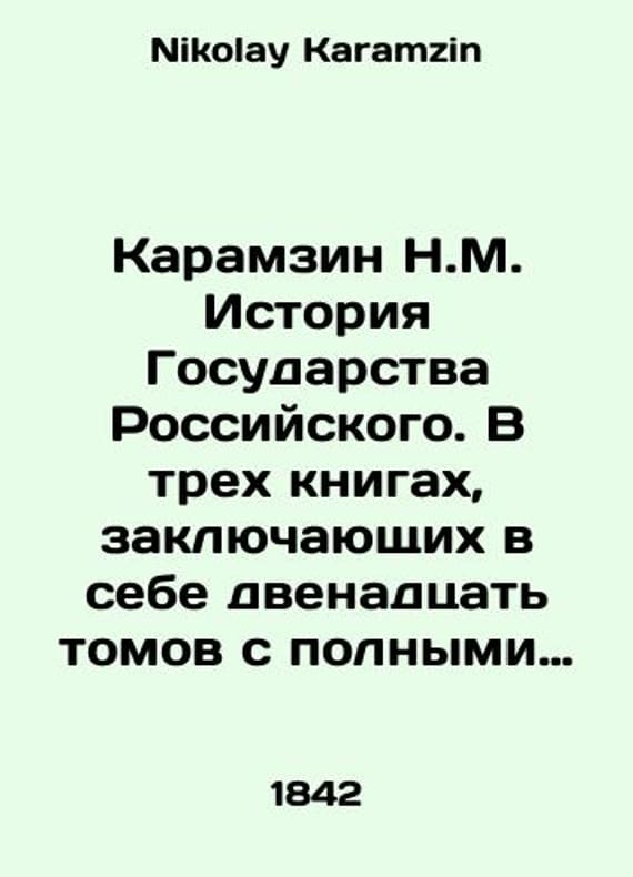 Karamzin N.M. History of the Russian State. In three books consisting of twelve volumes with full notes. In Russian /Karamzin N.M. Istoriya Gosudarstva Rossiyskogo. V trekh knigakh, zaklyuchayushchikh v sebe dvenadtsat tomov s polnymi primechaniyami. Fifth edition, 12 volumes in 3 books. With alphabetical index and family tree tables (Karamzin N.M.). St. Petersburg Printing House by Eduard Prats. 1842-1844. We have thousands of titles and often several copies of each title may be available. Please feel free to contact us for a detailed description of the copies available. SKUalb2613063432a543ac.