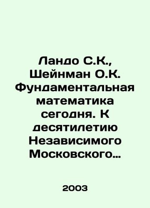 Lando S.C., Scheinman D.C. Fundamental Mathematics Today. To the tenth anniversary of the Independent Moscow University. In Russian /Lando S.K., Sheynman O.K. Fundamentalnaya matematika segodnya. K desyatiletiyu Nezavisimogo Moskovskogo Universiteta. M. ICNMO 2003. 408 p. We have thousands of titles and often several copies of each title may be available. Please feel free to contact us for a detailed description of the copies available. SKUalb265ea11e552a72cc.