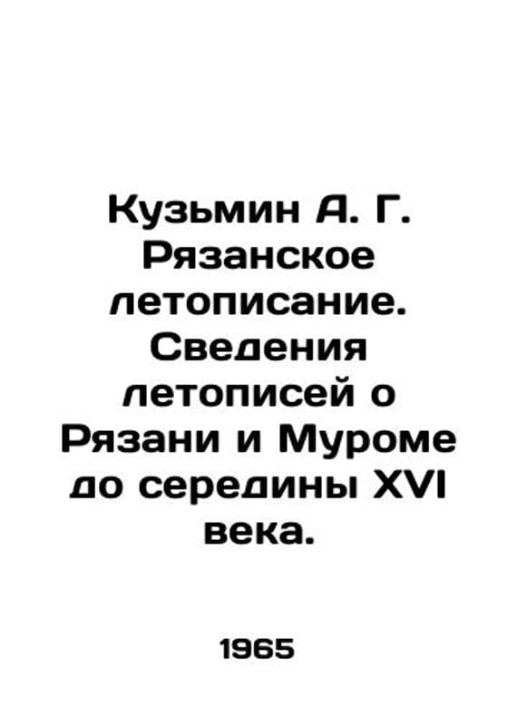 Kuzmin A. G. Ryazan Chronicle. Information about Ryazan and Moore up to the middle of the sixteenth century. In Russian (ask us if in doubt)/Kuzmin A. G. Ryazanskoe letopisanie. Svedeniya letopisey o Ryazani i Murome do serediny XVI veka.M. Nauka. 1965. 286 p. We have thousands of titles and often several copies of each title may be available. Please feel free to contact us for a detailed description of the copies available. SKUalb267a629e1d226080