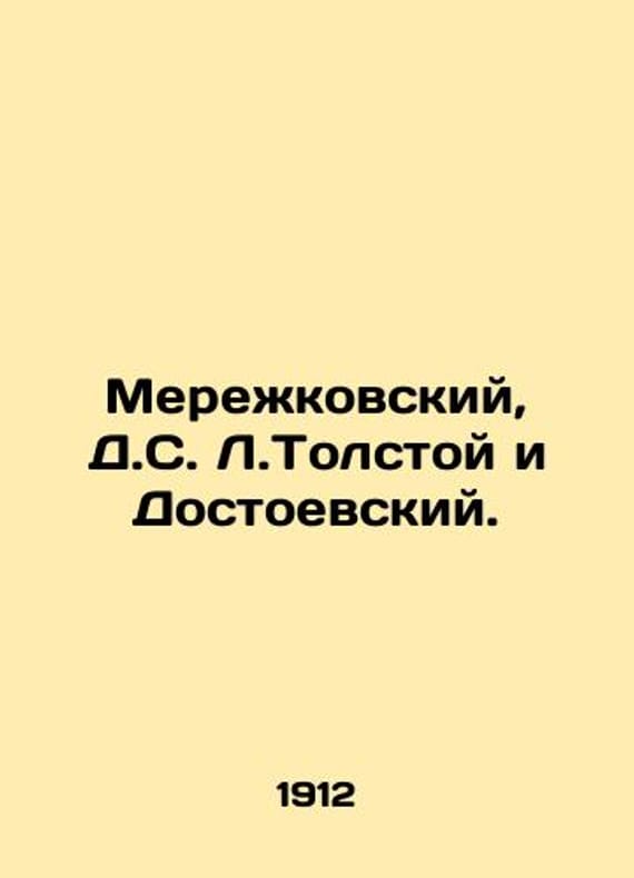Merezhkovsky, D.S. Tolstoy and Dostoevsky. In Russian /Merezhkovskiy, D.S. L.Tolstoy i Dostoevskiy. Life, Creativity, and Religion. Volume IX. A Complete Collection of Works. St. Petersburg, M. Editions by M. O. Wolf, 1912. 251 2 p. We have thousands of titles and often several copies of each title may be available. Please feel free to contact us for a detailed description of the copies available. SKUalb268b0ea7c2a89052.