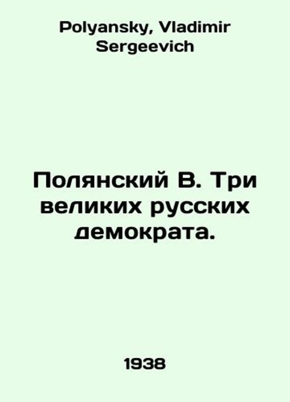 Polyansky V. Three great Russian democrats. In Russian /Polyanskiy V. Tri velikikh russkikh demokrata. M Art Literature 1938. 278 p. We have thousands of titles and often several copies of each title may be available. Please feel free to contact us for a detailed description of the copies available. SKUalb26d0068a7621b07d.