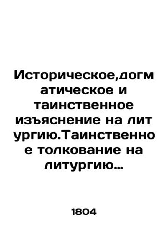 """Historical dogmatic and mysterious interpretation of the Liturgy. Mystery interpretation of the Liturgy of His Beatitude Simeon Metropolitan of Thessalonite. In Russian (ask us if in doubt)/Istoricheskoe dogmaticheskoe i tainstvennoe izyasnenie na liturgiyu.Tainstvennoe tolkovanie na liturgiyu Blazhenneyshego Simeona Metropolita Fessalonitskogo. Short description: In Russian (ask us if in doubt).In which it is revealed: from whom when and at what end the Liturgy is set; how it was performed in the Apostolic times and in the first three centuries up to the time of Basil the Great and Saint Chrysostom; when by whom and on what occasion are set in the performance of its prayers reading Moscow In the Synodal Printing House. 1804. 254s. We have thousands of titles and often several copies of each title may be available. Please feel free to contact us for a detailed description of the copies available. SKUalb26e0a8f3a3a4347a"""
