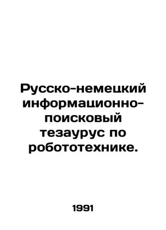 Russian-German information and search thesaurus on robotics. In Russian /Russko-nemetskiy informatsionno-poiskovyy tezaurus po robototekhnike. Russian-German information and search thesaurus on robotics. 1991. Moscow. We have thousands of titles and often several copies of each title may be available. Please feel free to contact us for a detailed description of the copies available. SKUalb270a1a35fccb73cd.