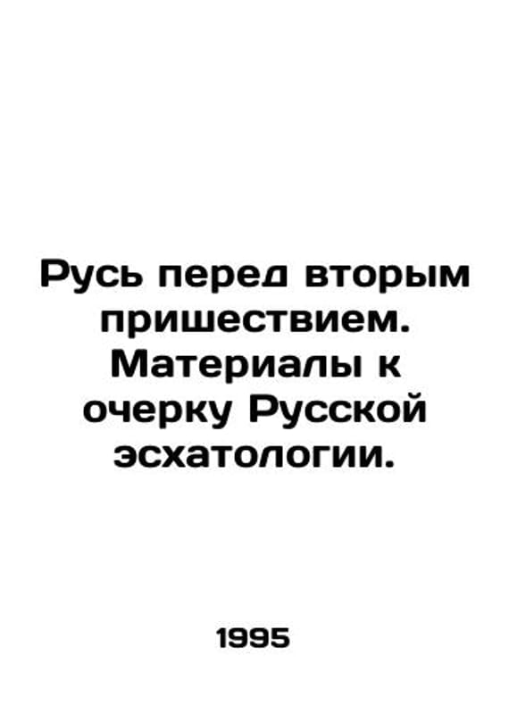 Russia before the Second Coming: Materials for an Essay on Russian Eschatology. In Russian /Rossiya pered vtorym prishestviem: Materialy k ocherku russkoy eskhatologii. Compiled by S. Fomin. Edition of the Holy Trinity Sergius Lavra, 1993, 384s. We have thousands of titles and often several copies of each title may be available. Please feel free to contact us for a detailed description of the copies available. SKUalbbe28669d86c826d0.