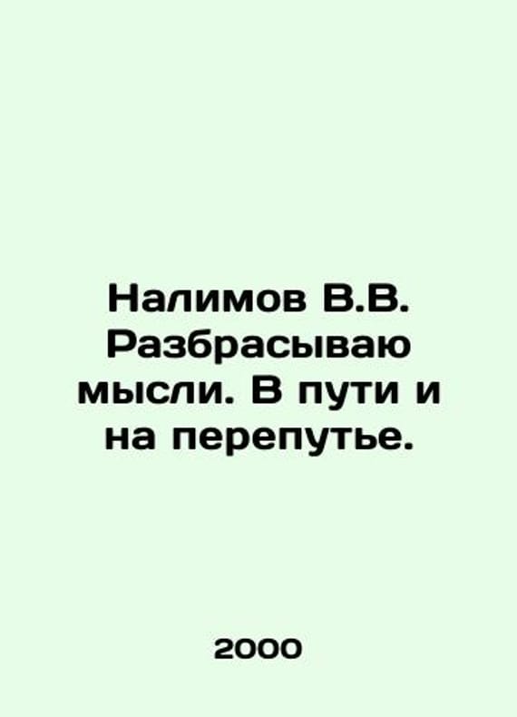 V.V. Nalimov I throw away my thoughts. On the way and at a crossroads. In Russian /Nalimov V.V. Razbrasyvayu mysli. V puti i na perepute. Editor I.I. Blauberg.Artist A.N.Dyachkov. M. Progress-Tradition. 2000. 344s. We have thousands of titles and often several copies of each title may be available. Please feel free to contact us for a detailed description of the copies available. SKUalb27343698682c9c5b.