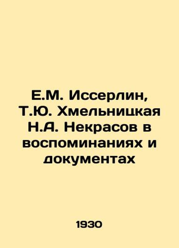 E.M. Isserlin, T.Yu. Khmelnitskaya N.A. Nekrasov in Memories and Documents In Russian /E.M. Isserlin, T.Yu. Khmelnitskaya N.A. Nekrasov v vospominaniyakh i dokumentakh Under the editorship of Y.G. Oxman Leningrad ACADEMIA 1930. We have thousands of titles and often several copies of each title may be available. Please feel free to contact us for a detailed description of the copies available. SKUalb2766695b5da037c2.