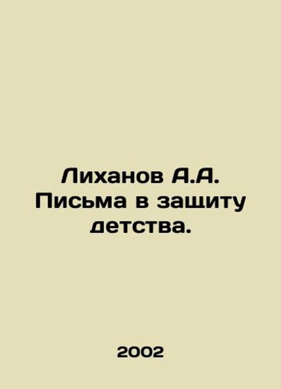 Likhanov A.A. Letters in defense of childhood. In Russian /Likhanov A.A. Pisma v zashchitu detstva. Second edition, supplemented. Moscow: Publishing, Educational, and Cultural Center: Childhood. Adolescence. Youth. 2002. 656 p. We have thousands of titles and often several copies of each title may be available. Please feel free to contact us for a detailed description of the copies available. SKUalb276daaa4df927b29.