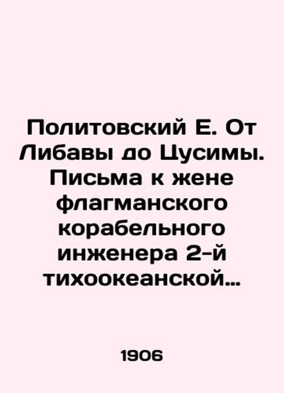 Politovsky E. From Libava to Tsushima. Letters to the wife of the flagship ship engineer of the 2nd Pacific Squadron Evgeny Sigismundovich Politovsky. Posthumous Edition In Russian (ask us if in doubt)/Politovskiy E. Ot Libavy do Tsusimy. Pisma k zhene flagmanskogo korabelnogo inzhenera 2-y tikhookeanskoy eskadry Evgeniya Sigizmundovicha Politovskogo. Posmertnoe izdanie 1906. 268s. We have thousands of titles and often several copies of each title may be available. Please feel free to contact us for a detailed description of the copies available. SKUalb27c5a50bdf75045e