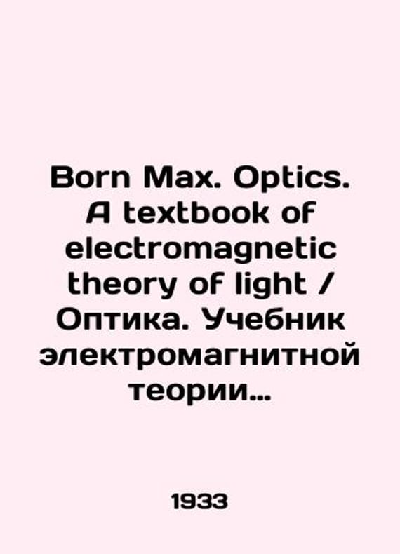 Born Max. Optics. A textbook of electromagnetic theory of light. Textbook of electromagnetic theory of light In Russian (ask us if in doubt)/Born Max. Optics. A textbook of electromagnetic theory of light / Optika. Uchebnik elektromagnitnoy teorii sveta. Berlin 1933. 590 p. We have thousands of titles and often several copies of each title may be available. Please feel free to contact us for a detailed description of the copies available. SKUalb27ed361c320a8c51