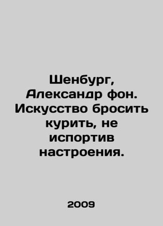 Schoenburg, Alexander von. The art of giving up smoking without spoiling your mood. In Russian /Shenburg, Aleksandr fon. Iskusstvo brosit kurit, ne isportiv nastroeniya. Translated from it by S. Gorodetsky. Moscow. TEXT. 2009. 157 p. We have thousands of titles and often several copies of each title may be available. Please feel free to contact us for a detailed description of the copies available. SKUalb2805998758faad4a.