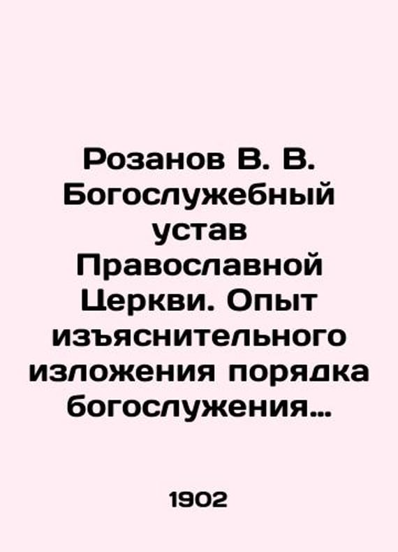 Rozanov V. V. The Liturgical Statute of the Orthodox Church. Experience in the Explanatory Explanatory Explanation of the Order of Service of the Orthodox Church In Russian (ask us if in doubt)/Rozanov V. V. Bogosluzhebnyy ustav Pravoslavnoy Tserkvi. Opyt izyasnitelnogo izlozheniya poryadka bogosluzheniya Pravoslavnoy Tserkvi M. Typo-lithography by A. V. Vasilyev and K Petrovka Obidina House. 1902. 786 p. We have thousands of titles and often several copies of each title may be available. Please feel free to contact us for a detailed description of the copies available. SKUalb2814e15814ae1a81