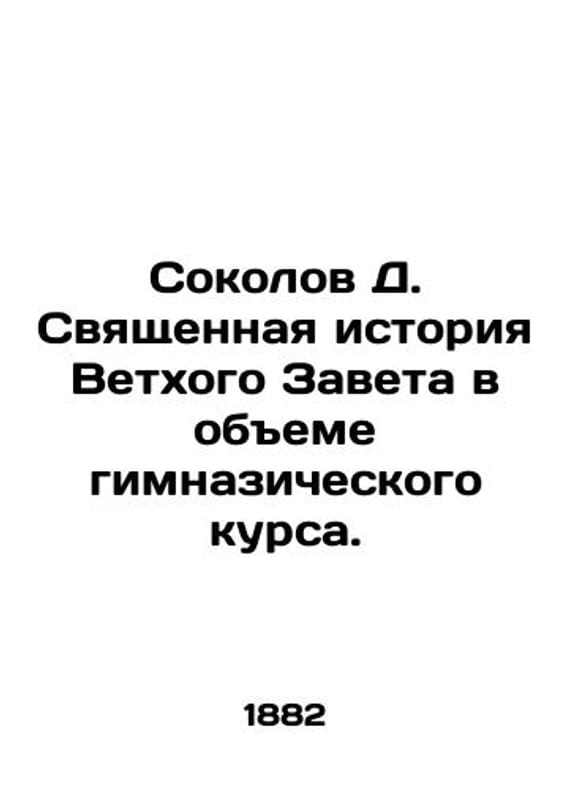 Sokolov D. The Holy History of the Old Testament in the volume of a gymnasium course. In Russian /Sokolov D. Svyashchennaya istoriya Vetkhogo Zaveta v obeme gimnazicheskogo kursa. With 17 drawings, two maps and indices. St. Petersburg. Printing House of the Ministry of Communications. 1882. 140c. We have thousands of titles and often several copies of each title may be available. Please feel free to contact us for a detailed description of the copies available. SKUalb2868250a2920b157.