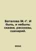 Batalova M.-G. Both the past and the present: fairy tales, stories, scripts. In Russian /Batalova M.-G. I byl, i nebyl: skazki, rasskazy, stsenariy. S.Pb.A.V. Batalova. M. LNG Group 2004. 112 s. We have thousands of titles and often several copies of each title may be available. Please feel free to contact us for a detailed description of the copies available. SKUalb289f0caa0479d97c.