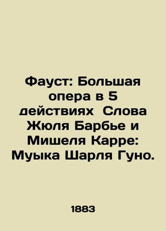 Faust: Grand Opera in 5 Acts Words by Jules Barbier and Michel Carre: Muick Charles Gounod. In Russian /Faust: Bolshaya opera v 5 deystviyakh Slova Zhyulya Barbe i Mishelya Karre: Muyka Sharlya Guno. St. Petersburg. Eduard Goppes Printing House. 1883. We have thousands of titles and often several copies of each title may be available. Please feel free to contact us for a detailed description of the copies available. SKUalb28b3be5ae805f525.