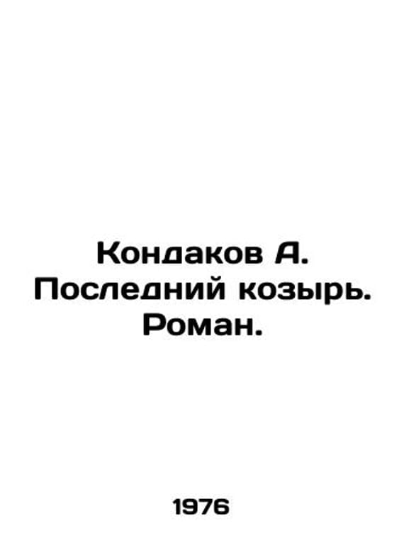 Kondakov A. Last trump. Roman. In Russian /Kondakov A. Posledniy kozyr. Roman. Series: Novelties of Sovremennik. Moscow. Sovremennik. 1976. 255 p. We have thousands of titles and often several copies of each title may be available. Please feel free to contact us for a detailed description of the copies available. SKUalb290a8d02c3731cc5.