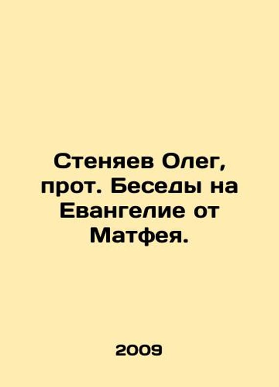 Oleg Stenyaev, Archpriest of the Conversations on the Gospel according to Matthew. In Russian /Stenyaev Oleg, prot. Besedy na Evangelie ot Matfeya. M. The Community of the Church of the Transfiguration of the Lord in Stary Beliaev. 2009. 554 p. We have thousands of titles and often several copies of each title may be available. Please feel free to contact us for a detailed description of the copies available. SKUalb290d2c5d5c710ae6.