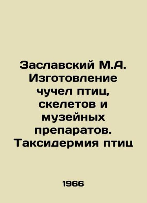 Zaslavsky M.A. Making effigies of birds, skeletons and museum drugs. Bird taxidermy In Russian /Zaslavskiy M.A. Izgotovlenie chuchel ptits, skeletov i muzeynykh preparatov. Taksidermiya ptitsAcademy of Sciences of the USSR. Zoological Institute of Moscow-Leningrad Science 1966.We have thousands of titles and often several copies of each title may be available. Please feel free to contact us for a detailed description of the copies available. SKUalb292212465d187889.