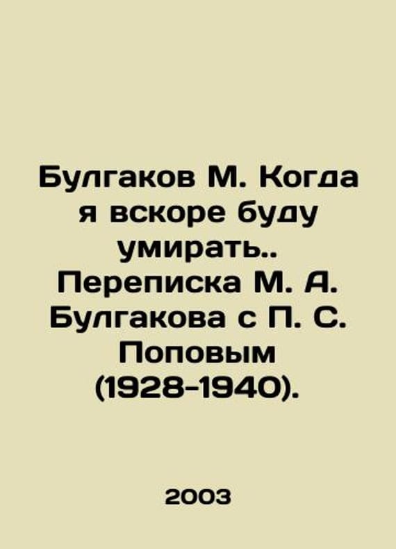 Bulgakov M. When Im Soon to Die. Correspondence between Bulgakov and Popov (1928-1940). In Russian /Bulgakov M. Kogda ya vskore budu umirat. Perepiska M. A. Bulgakova s P. S. Popovym (1928-1940). M. Eksmo 2003. 272 p. We have thousands of titles and often several copies of each title may be available. Please feel free to contact us for a detailed description of the copies available. SKUalb294d8e6fc40ef546.
