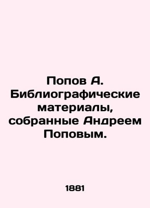 Popov A. Bibliographic materials collected by Andrei Popov. In Russian /Popov A. Bibliograficheskie materialy, sobrannye Andreem Popovym. A Tale of the Destruction of the Moscow State and the Whole Russian Land. M. Imperial Society of History and Antiquities of Russia at Moscow University, 1881. 64 p. We have thousands of titles and often several copies of each title may be available. Please feel free to contact us for a detailed description of the copies available. SKUalb296ef8d5025b5d06.