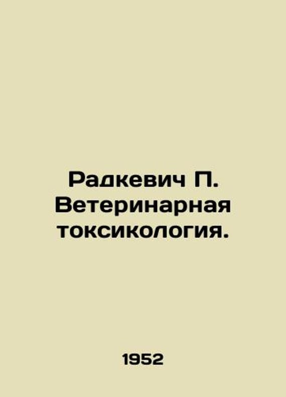 Radkiewicz Veterinary toxicology. In Russian /Radkevich Veterinarnaya toksikologiya.M. Goskhozhizdat. 1952.We have thousands of titles and often several copies of each title may be available. Please feel free to contact us for a detailed description of the copies available. SKUalb2990370c353b9f8c.