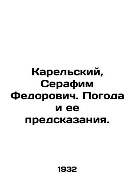 Karelsky, Seraphim Fedorovich. Weather and its predictions. In Russian /Karelskiy, Serafim Fedorovich. Pogoda i ee predskazaniya. Voronezh: edition and type of book of the Commune, 1932. We have thousands of titles and often several copies of each title may be available. Please feel free to contact us for a detailed description of the copies available. SKUalb29c088307039416e.