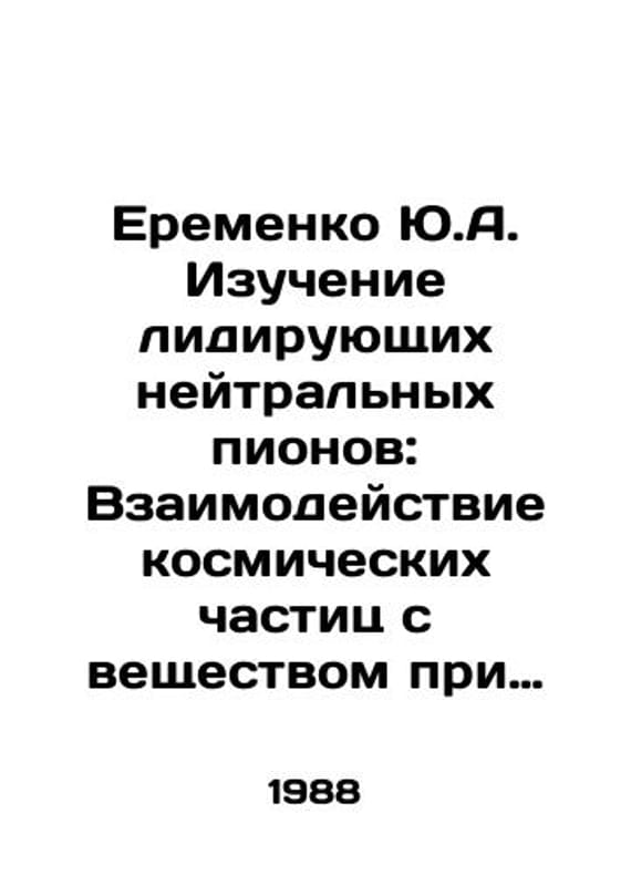Eremenko Yu.A. Study of leading neutral peonies: Interaction of cosmic particles with matter at energies above 3 TeV. In Russian /Eremenko Yu.A. Izuchenie lidiruyushchikh neytralnykh pionov: Vzaimodeystvie kosmicheskikh chastits s veshchestvom pri energiyakh vyshe 3 TeV. Study of leading neutral peonies: Interaction of cosmic particles with matter at energies above 3 TeV Alma-Ata Science 1988 208 p. We have thousands of titles and often several copies of each title may be available. Please feel free to contact us for a detailed description of the copies available. SKUalb29ee2a3421933337.