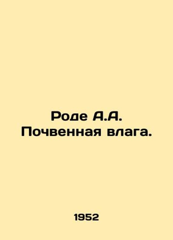 Rhode A.A. Soil Moisture. In Russian /Rode A.A. Pochvennaya vlaga. Moscow Publishing House of the Academy of Sciences of the USSR 1952. 456s. We have thousands of titles and often several copies of each title may be available. Please feel free to contact us for a detailed description of the copies available. SKUalb29f5878c39dc08ff.