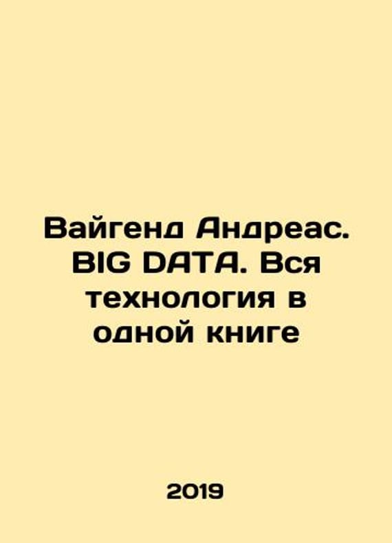 Weigend Andreas. BIG DATA. All technology in one book In Russian /Vaygend Andreas. BIG DATA. Vsya tekhnologiya v odnoy knige Series: Top Business Awards M Exmo 2019. We have thousands of titles and often several copies of each title may be available. Please feel free to contact us for a detailed description of the copies available. SKUalb2a12662575794e0f.