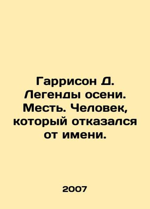 Harrison D. Legends of the Fall. Revenge. The Man Who Refused the Name. In Russian /Garrison D. Legendy oseni. Mest. Chelovek, kotoryy otkazalsya ot imeni. Translated from English by T. Borovikova, V. Golysheva. St. Petersburg. ABC-Classics. 2007. 304 p. We have thousands of titles and often several copies of each title may be available. Please feel free to contact us for a detailed description of the copies available. SKUalb2a71f165c7ec797d.