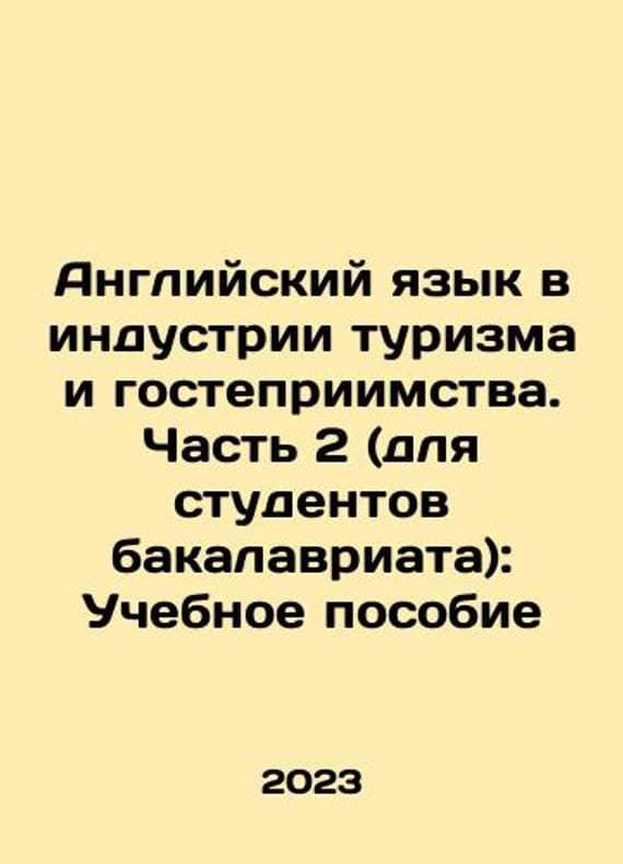 English in the Tourism and Hospitality Industry: Part 2 (for undergraduate students): A Textbook In Russian /Angliyskiy yazyk v industrii turizma i gostepriimstva. Chast 2 (dlya studentov bakalavriata): Uchebnoe posobie Prometheus Moscow 2023. 306 p. We have thousands of titles and often several copies of each title may be available. Please feel free to contact us for a detailed description of the copies available. SKUalb2a849d9b30ce5d42.