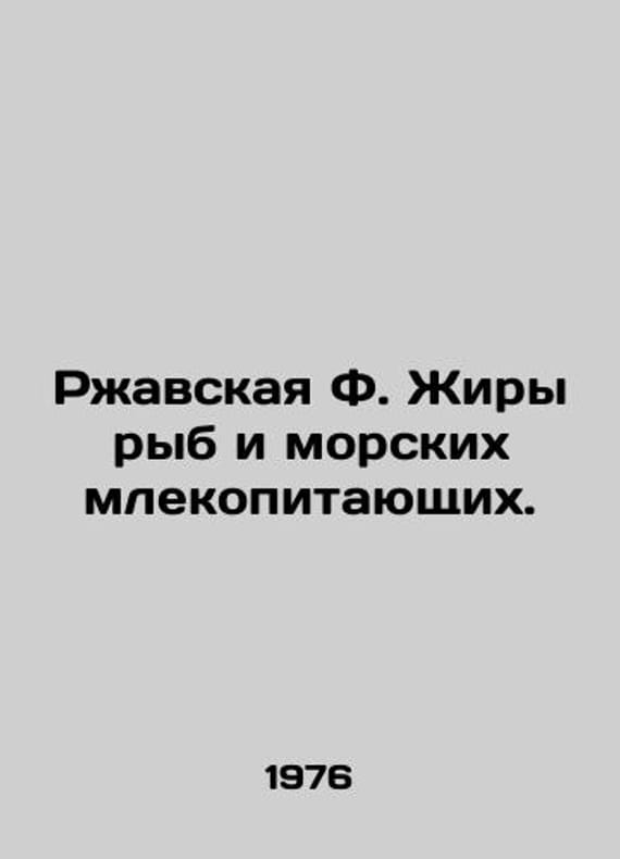 Rusty F. Fats of fish and marine mammals. In Russian /Rzhavskaya F. Zhiry ryb i morskikh mlekopitayushchikh. M Food Industry 1976 472 p. We have thousands of titles and often several copies of each title may be available. Please feel free to contact us for a detailed description of the copies available. SKUalb2a9b492525bc75e6.