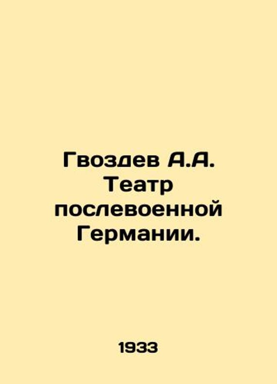Nvozdev A.A. Theatre of postwar Germany. In Russian /Gvozdev A.A. Teatr poslevoennoy Germanii. State Publishing House of Fiction Literature, 1933.190p. We have thousands of titles and often several copies of each title may be available. Please feel free to contact us for a detailed description of the copies available. SKUalb2aa695178257a53c.