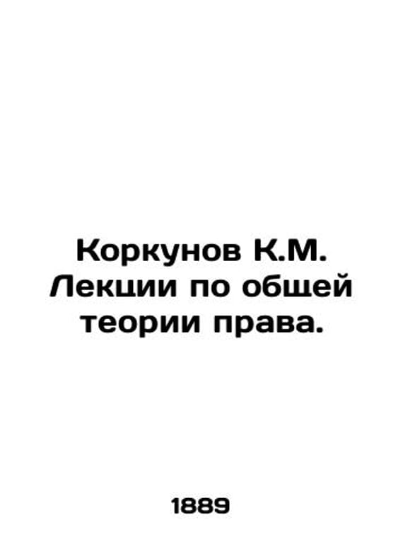 N. Korkunov Lectures on General Theory of Law. In Russian (ask us if in doubt)/Korkunov N. Lektsii po obshchey teorii prava.Korkunov Nikolai Mikhailovich (1853-1904) Russian legal scholar philosopher of law. Professor specialist In state and In ternational law. Taught at St. Petersburg University Military Law Academy and other educational In stitutions. Developed a sociological direction In jurisprudence. SKUalb07d7d479b611c045.