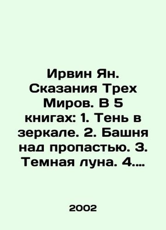 Irvin Yang. The Tales of the Three Worlds. In 5 books: 1. Shadow in the Mirror. 2. Tower over the abyss. 3. Dark moon. 4. Gates of the three worlds. 5. Geomant. In Russian /Irvin Yan. Skazaniya Trekh Mirov. V 5 knigakh: 1. Ten v zerkale. 2. Bashnya nad propastyu. 3. Temnaya luna. 4. Vrata trekh mirov. 5. Geomant. Series: Fantasy Classics. S.Pb.ABC Classics. 2002-2004. 640 and 544 and 544 and 544 and 640 p. We have thousands of titles and often several copies of each title may be available. Please feel free to contact us for a detailed description of the copies available. SKUalb2b47a288dedfdf6d.