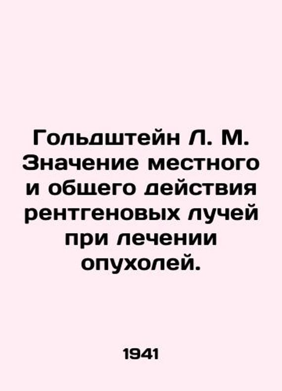 Goldstein L. M. The significance of the local and general action of X-rays in the treatment of tumors. In Russian /Goldshteyn L. M. Znachenie mestnogo i obshchego deystviya rentgenovykh luchey pri lechenii opukholey. L. 1941. We have thousands of titles and often several copies of each title may be available. Please feel free to contact us for a detailed description of the copies available. SKUalb2b4e75994e7e5526.
