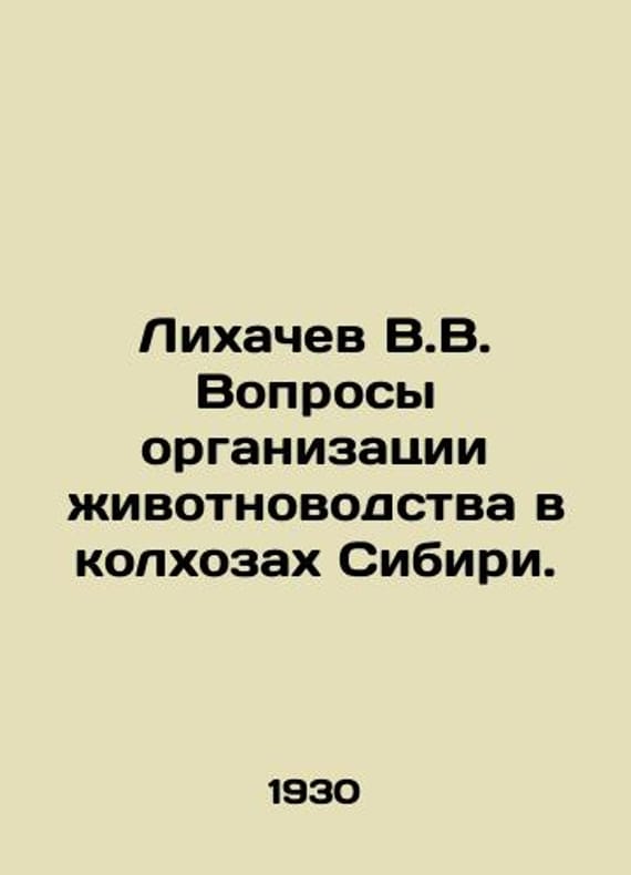Likhachev V.V. Questions of animal husbandry organization in the collective farms of Siberia. In Russian /Likhachev V.V. Voprosy organizatsii zhivotnovodstva v kolkhozakh Sibiri. Novosibirsk. Sibkraiizdat. 1930. 111s. We have thousands of titles and often several copies of each title may be available. Please feel free to contact us for a detailed description of the copies available. SKUalb2b54b65a0ffc326b.