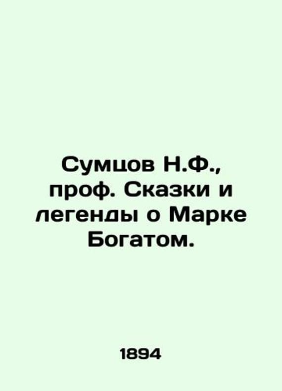 Sumtsov N.F. Professor of Tales and Legends of Mark Rich. In Russian (ask us if in doubt)/Sumtsov N.F. prof. Skazki i legendy o Marke Bogatom.. Short description: In Russian (ask us if in doubt).Moscow T-vo spekopech. A. A. Levenson 1894. 9-29 p. We have thousands of titles and often several copies of each title may be available. Please feel free to contact us for a detailed description of the copies available. SKUalb2b8b1a1d04d06e17