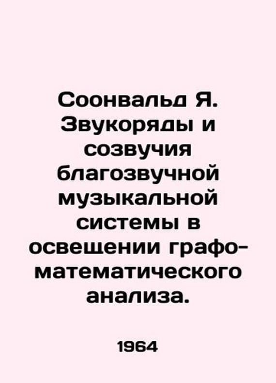 Soonwald Ya. Sound waves and sounds of a sound system in the lighting of grapho-mathematical analysis. In Russian /Soonvald Ya. Zvukoryady i sozvuchiya blagozvuchnoy muzykalnoy sistemy v osveshchenii grafo-matematicheskogo analiza. Tartu: Tartu State University, 1964. 178 p. We have thousands of titles and often several copies of each title may be available. Please feel free to contact us for a detailed description of the copies available. SKUalb2c145a86581a6d50.