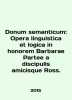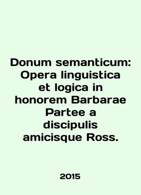 Donum semanticum: Opera linguistics et logica in honorem Barbara Partee a disciplulis amicisque Ross. In English /Donum semanticum: Opera linguistica et logica in honorem Barbarae Partee a discipulis amicisque Ross. M Languages of Slavic Cultures 2015. We have thousands of titles and often several copies of each title may be available. Please feel free to contact us for a detailed description of the copies available. SKUalb2c9c4407d47aa129.